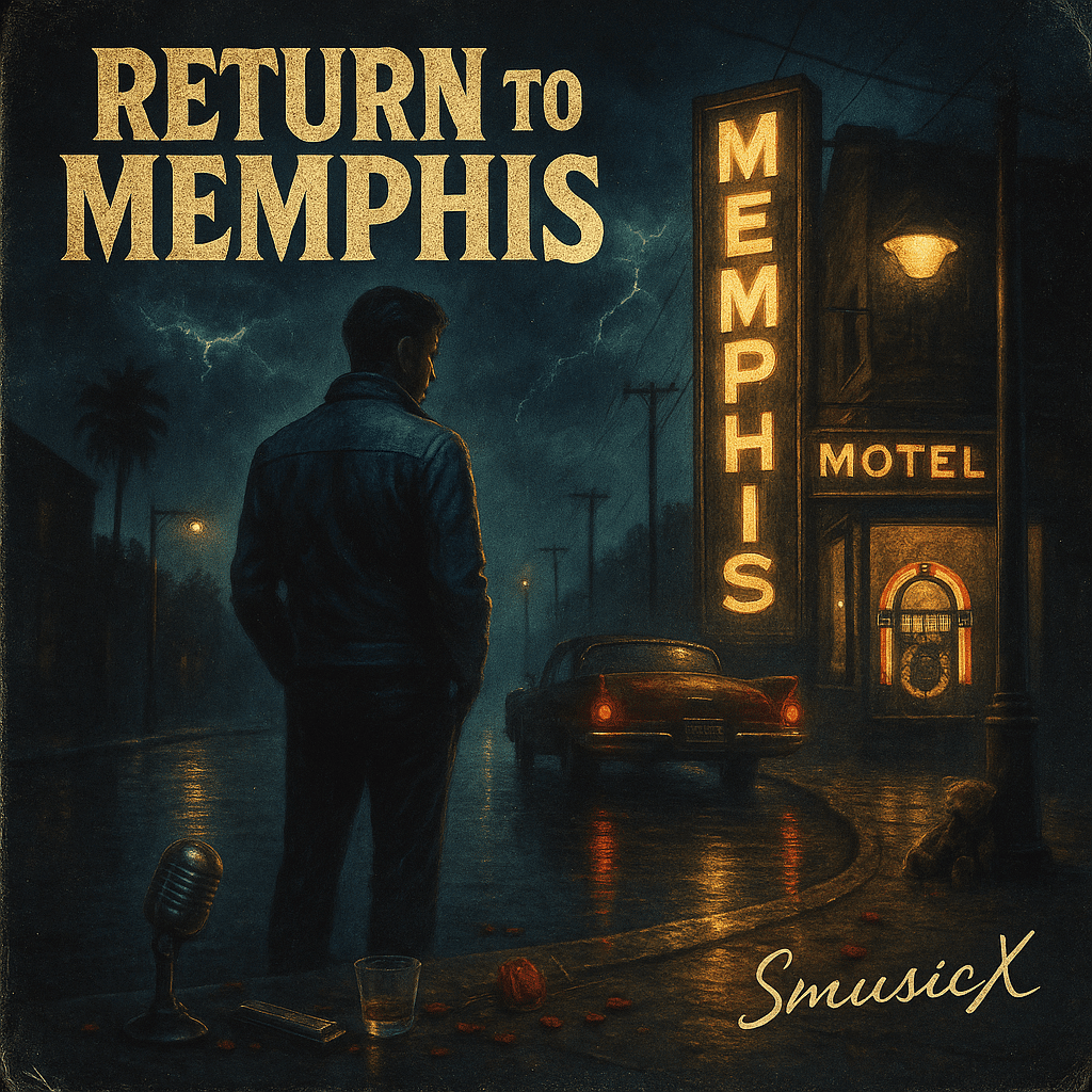 Drift through rain-soaked Memphis streets, where echoes of lost legends still haunt the night. “Return to Memphis” is a cinematic journey through the shadowy heart of the blues city — a world of forgotten love, neon-lit temptation, and poetic solitude.